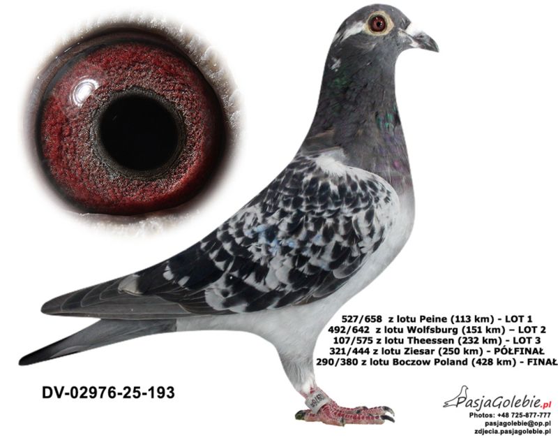 Osiągnięcia gołębi wypisane na zdjęciu.