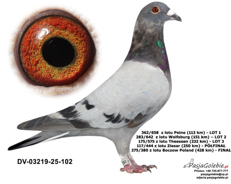 Osiągnięcia gołębi wypisane na zdjęciu.