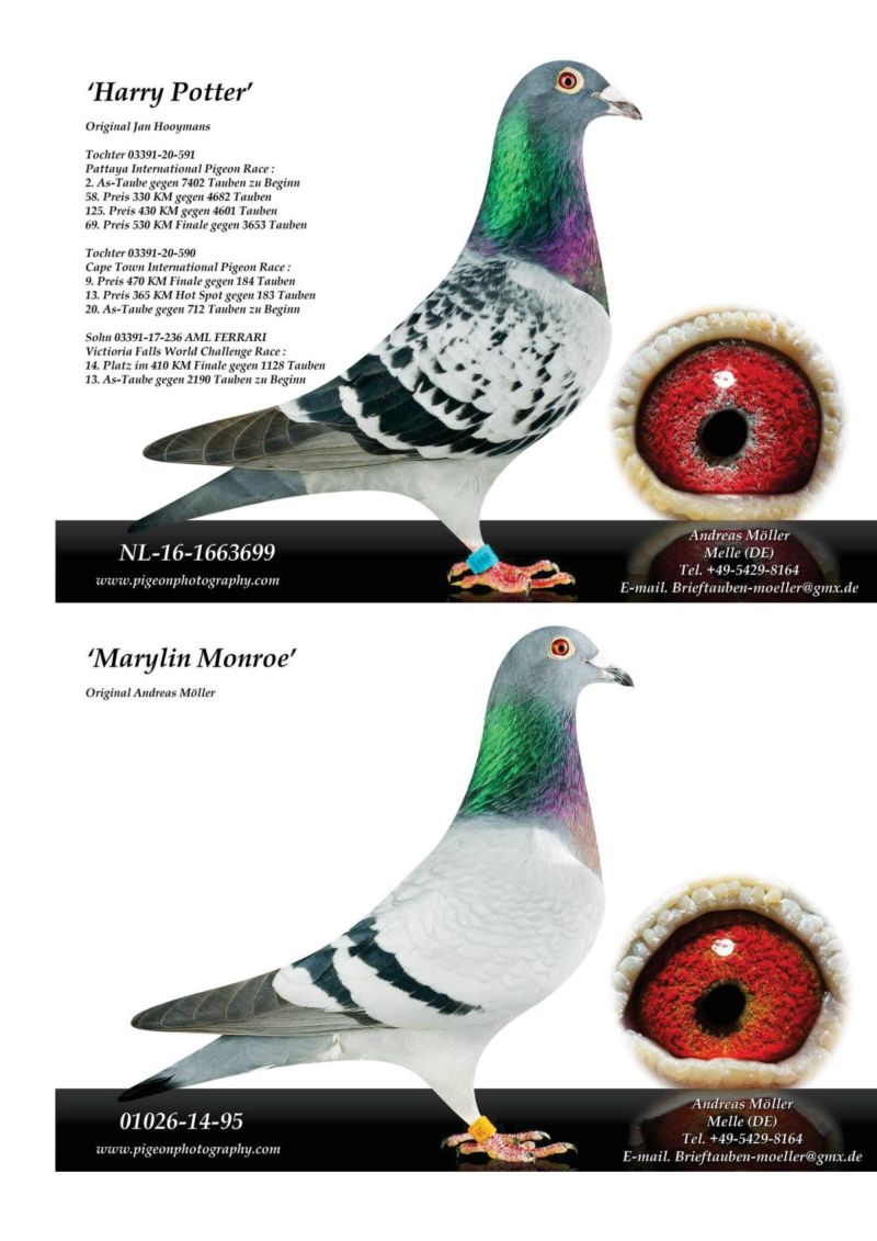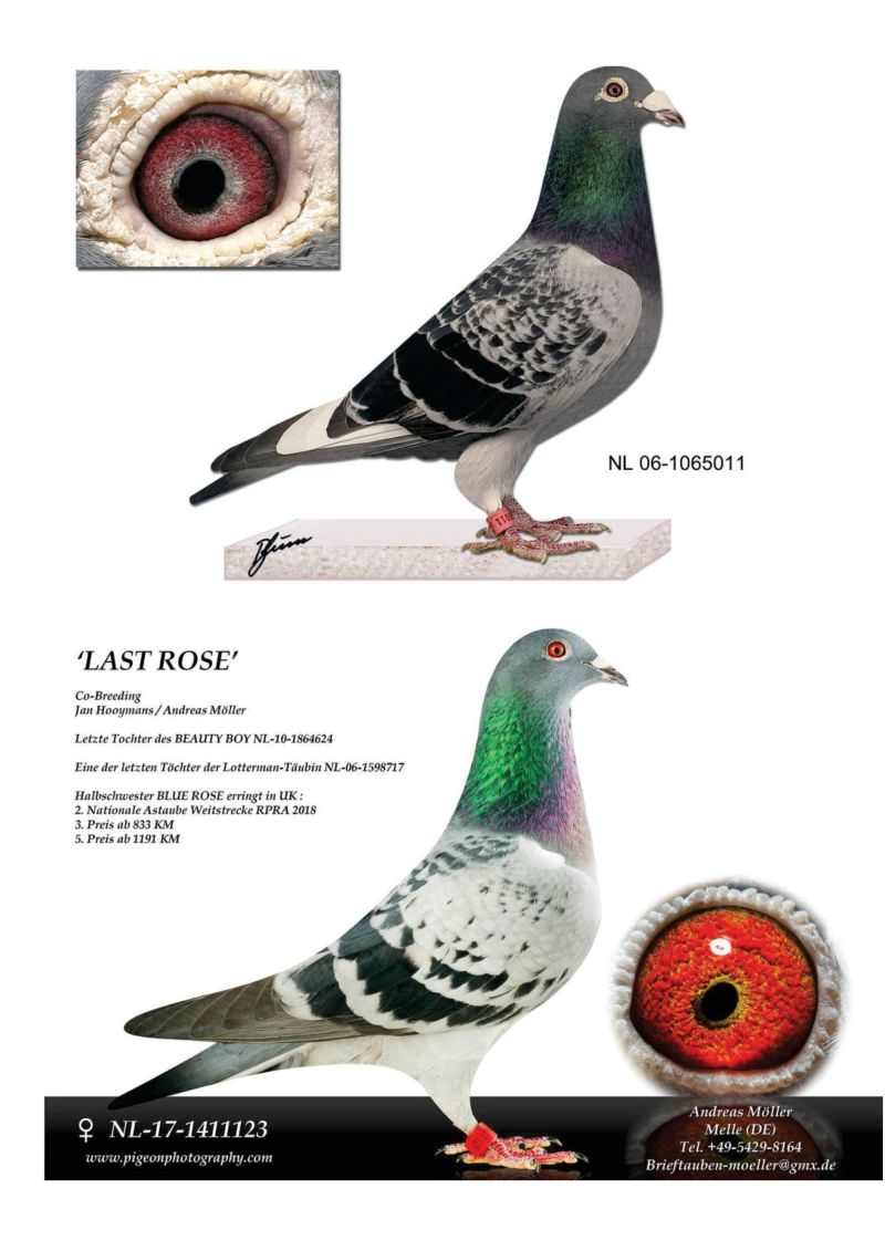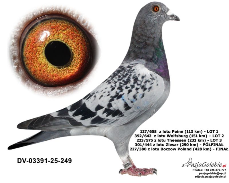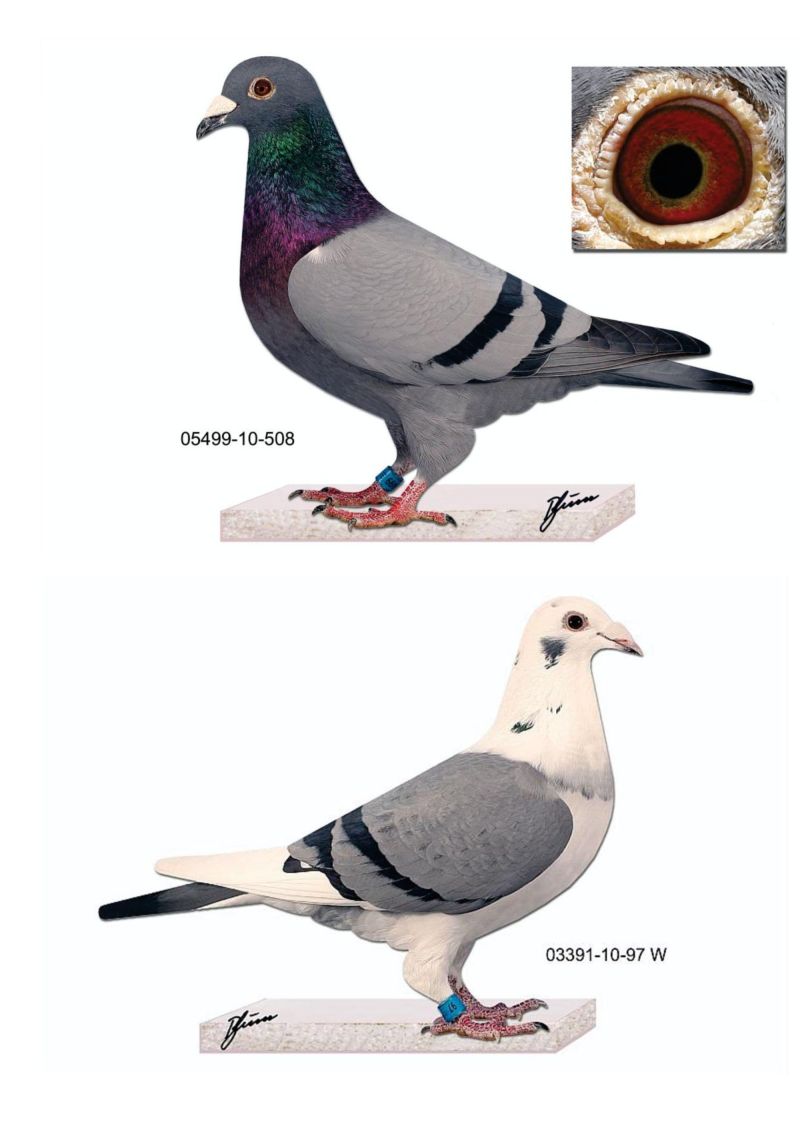 Osiągnięcia gołębi wypisane na zdjęciu.