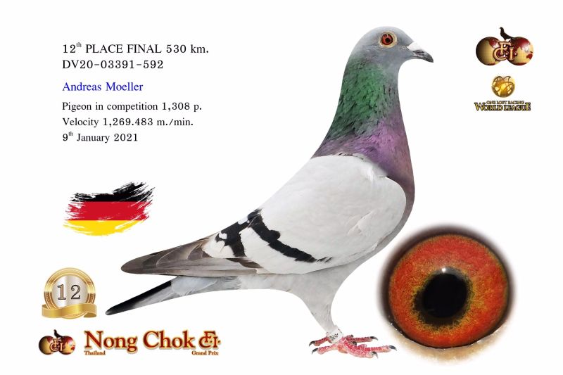 Płeć: młody gołąb Hodowca - rasa: WG Ostwestfalen Derby 2025 Zakończenie: 16.11.2025 godz. 18:50