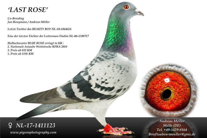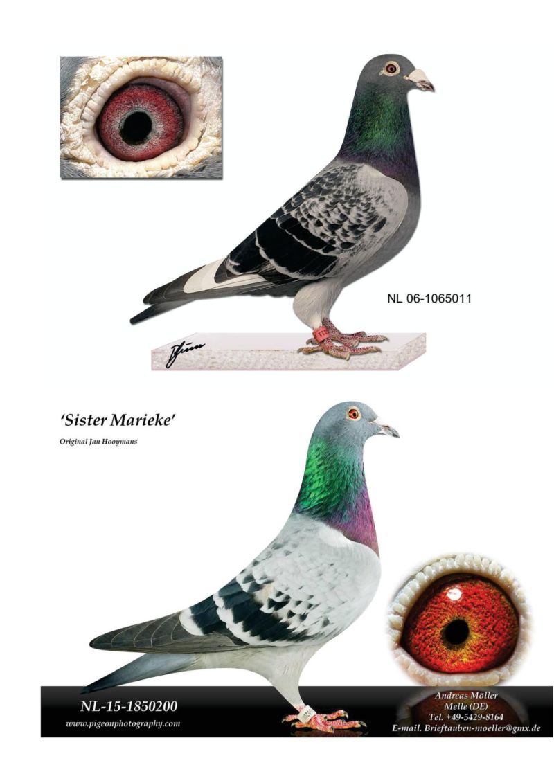 Osiągnięcia gołębi wypisane na zdjęciu.