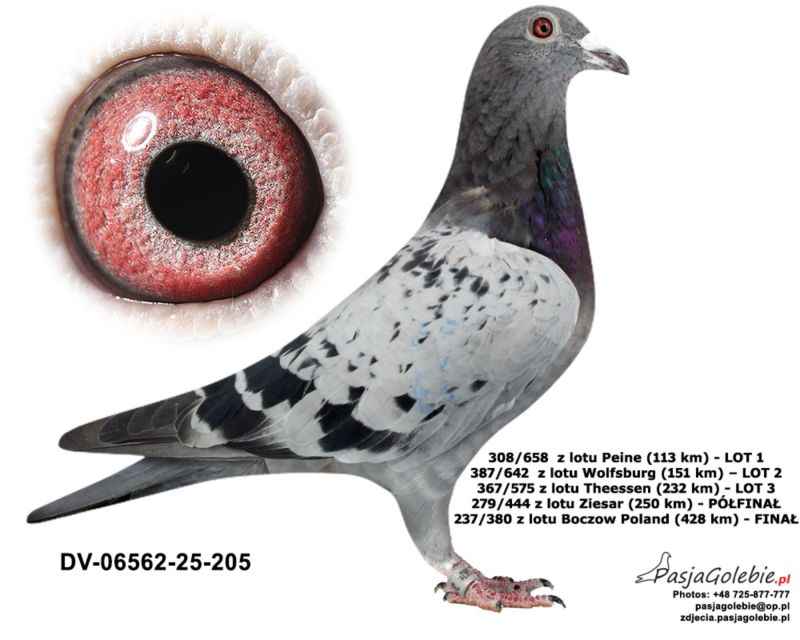 Osiągnięcia gołębi wypisane na zdjęciu.
