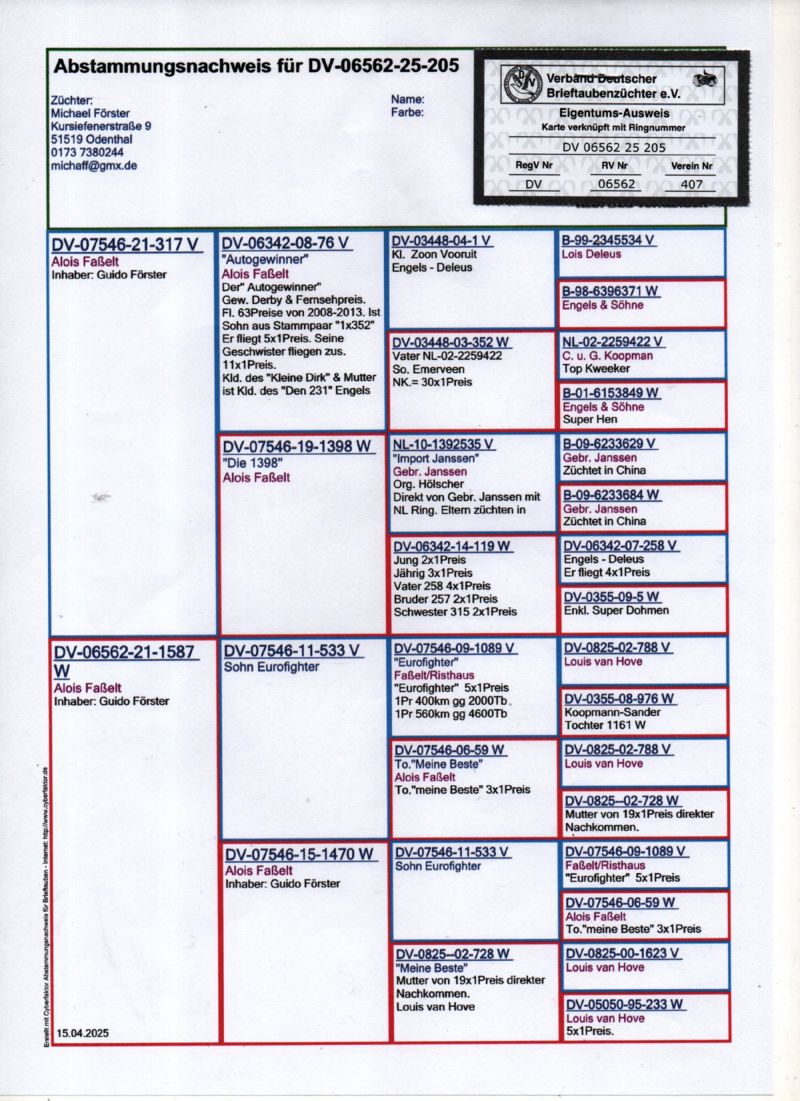 Gołąb z WG OSTWESTFALEN DERBY - Edycja 2025.