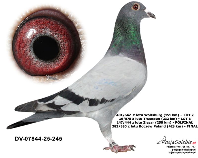 Osiągnięcia gołębi wypisane na zdjęciu.