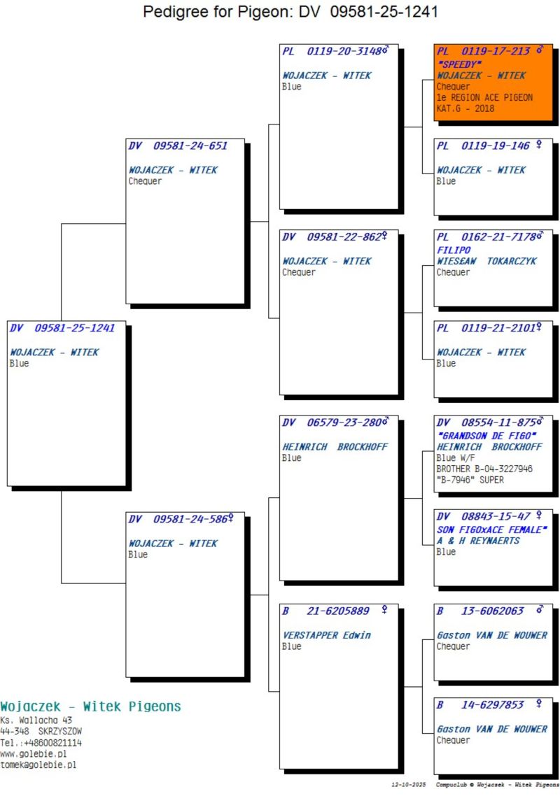 Osiągnięcia gołębi wypisane na zdjęciu.