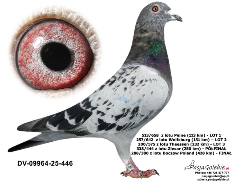 Osiągnięcia gołębi wypisane na zdjęciu.