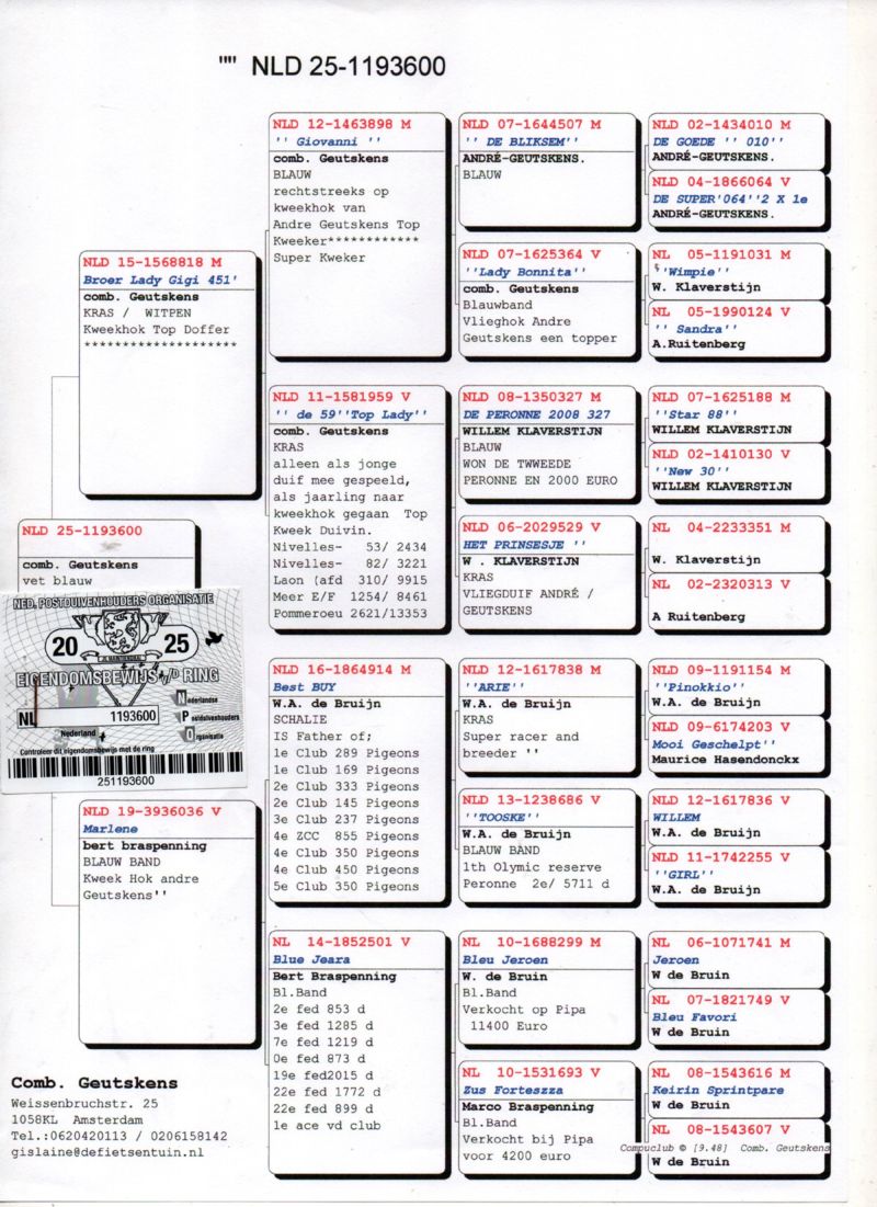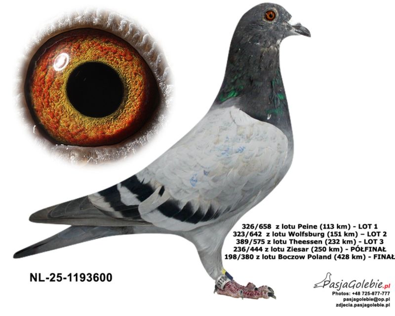 Osiągnięcia gołębi wypisane na zdjęciu.