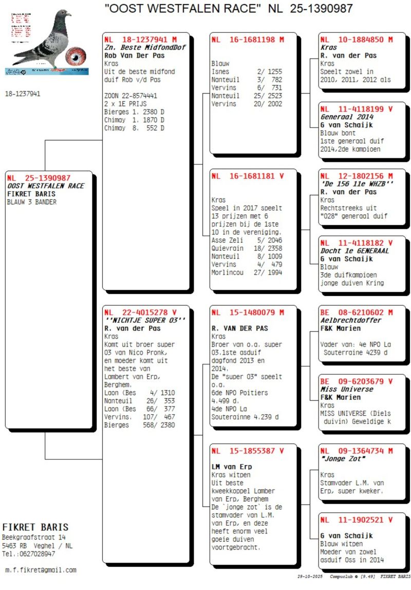 Gołąb z WG OSTWESTFALEN DERBY - Edycja 2025.