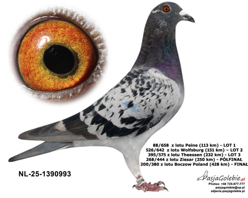 Osiągnięcia gołębi wypisane na zdjęciu.