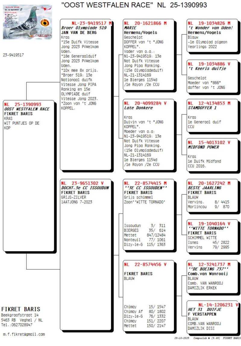 Gołąb z WG OSTWESTFALEN DERBY - Edycja 2025.