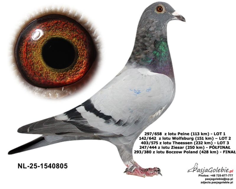 Osiągnięcia gołębi wypisane na zdjęciu.