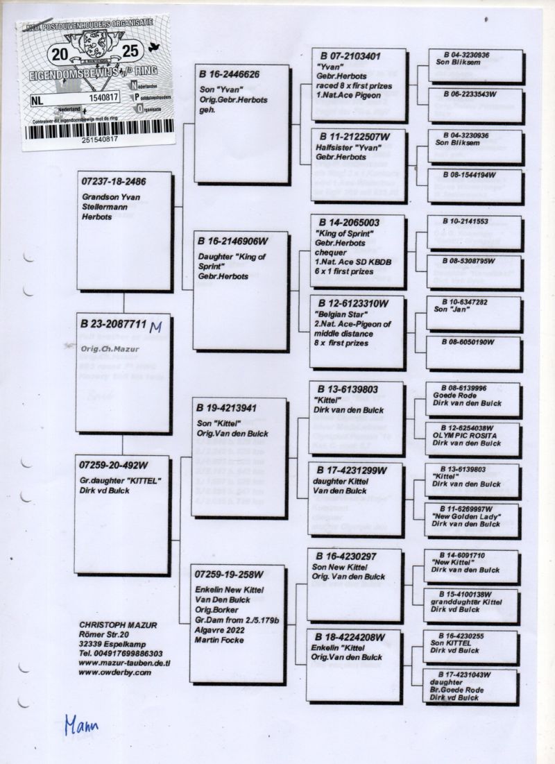 Płeć: młody gołąb Hodowca - rasa: WG Ostwestfalen Derby 2025 Zakończenie: 16.11.2025 godz. 17:50