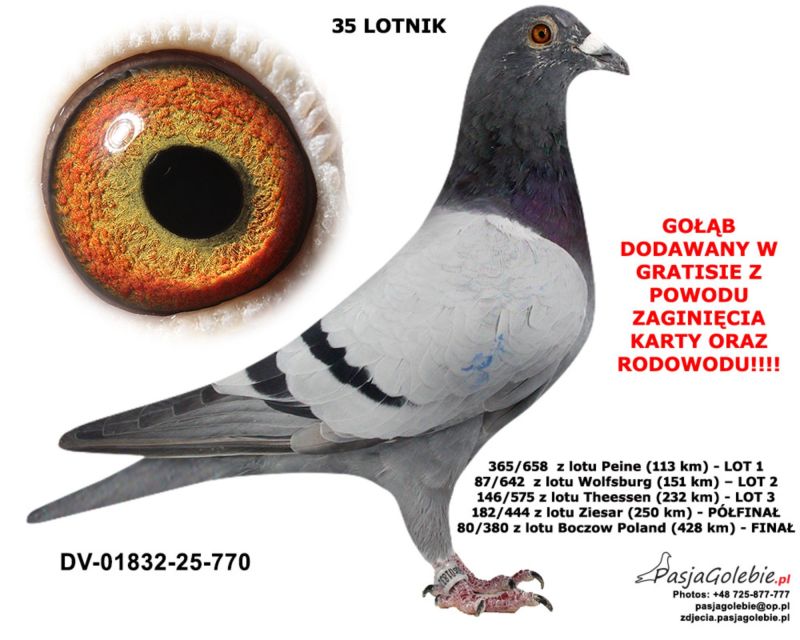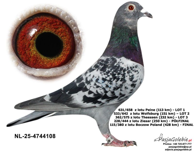 Osiągnięcia gołębi wypisane na zdjęciu.