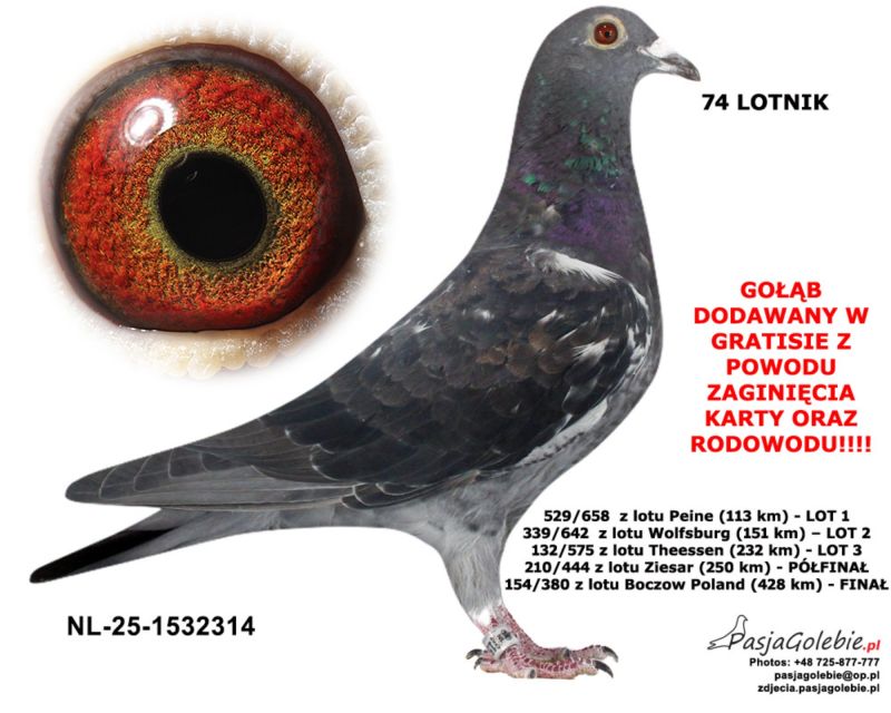 Osiągnięcia gołębi wypisane na zdjęciu.