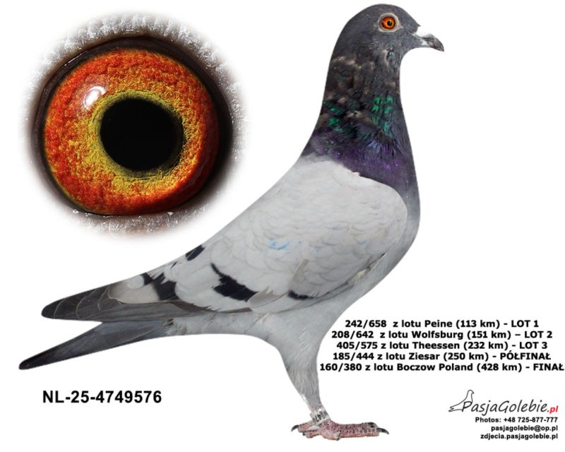Osiągnięcia gołębi wypisane na zdjęciu.
