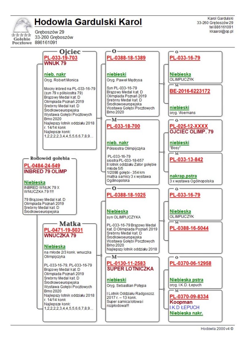 PL-0484-24-549 - inbredka Olimpijczyka 79 P. Medrysy wnuk 79 x wnuczka 79