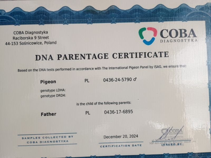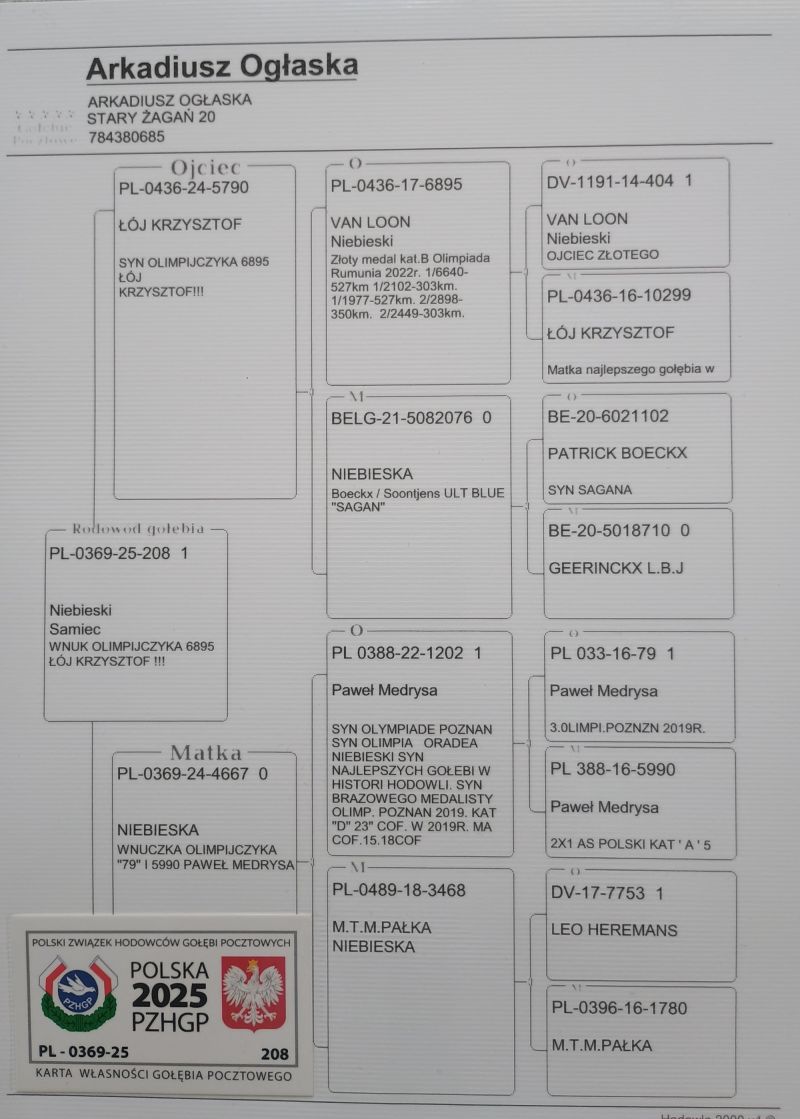PL-0369-25-208 SYN OLIMPIJCZYKA KRZYSZTOF ŁOJ 6895 X WNUCZKA OLIMPIJCZYKA 79 PAWEŁ MEDRYSA CERTYFIKAT DNA!!!