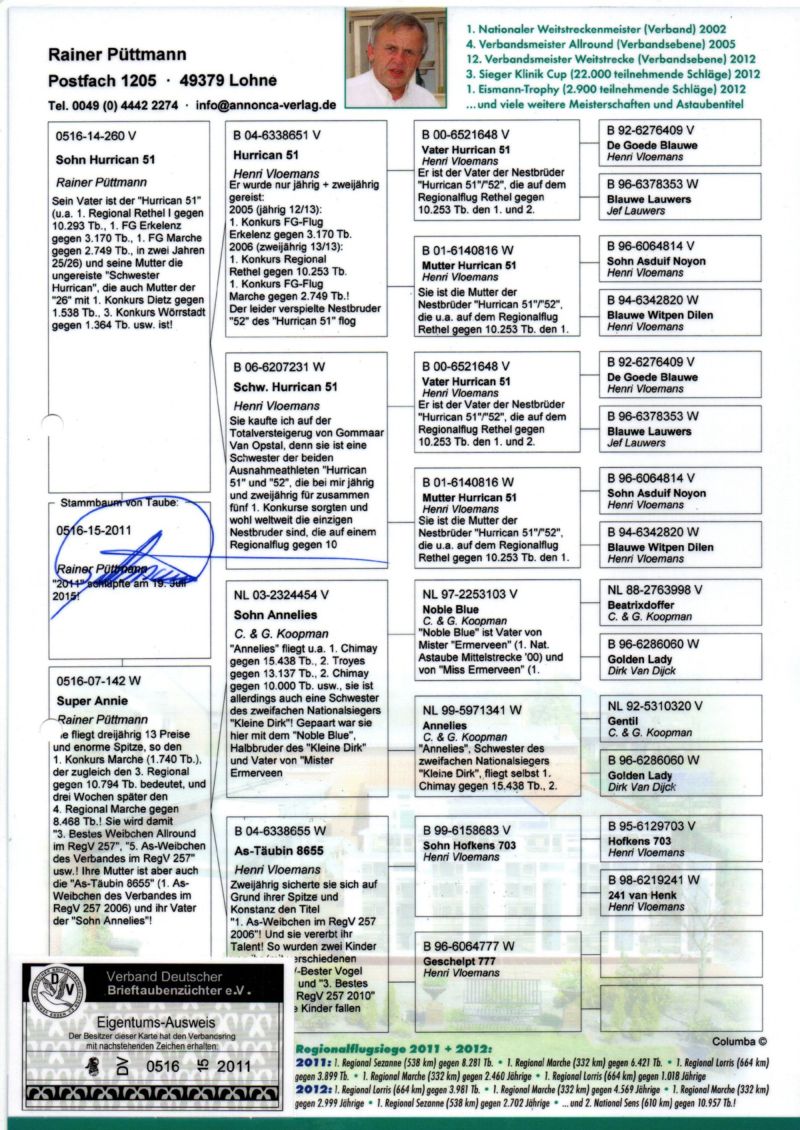 DV-0516-15-2011 - oryg. Rainer Puttmann - Wnuk HURRICAN 51 - Prawnuk ANNELIES C. & G. Koopman