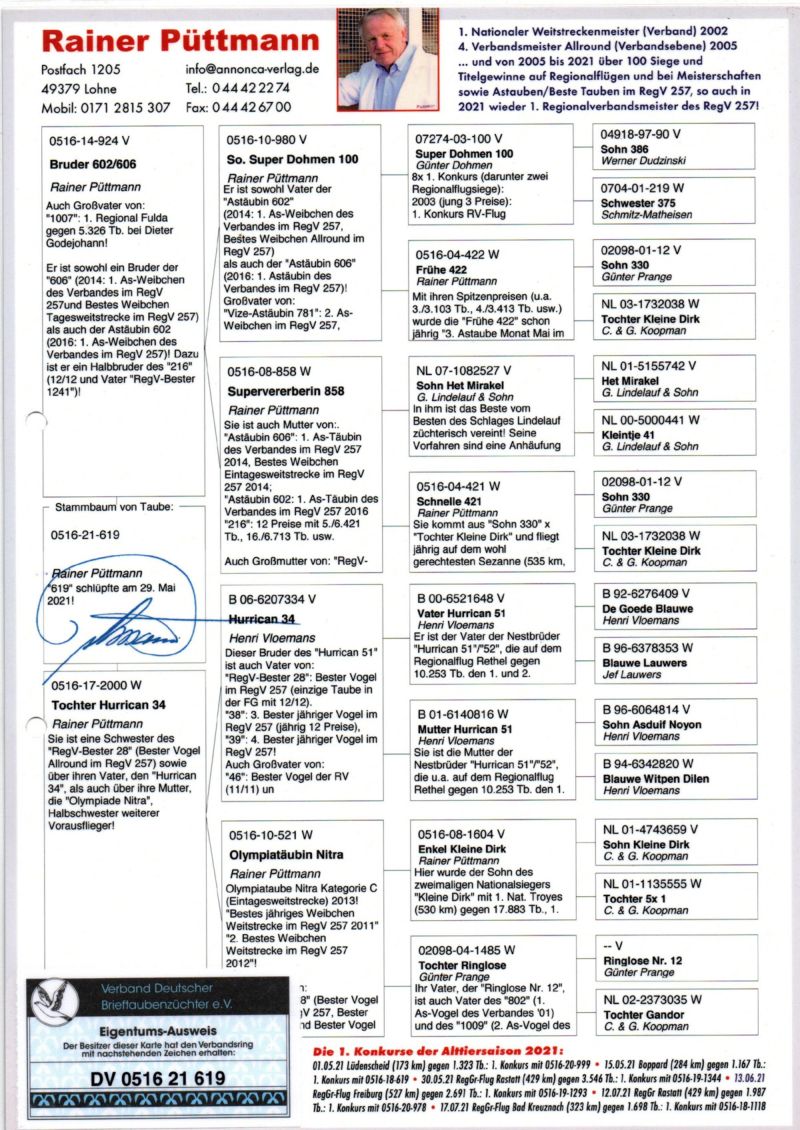 DV-0516-21-619 - oryg. Rainer Puttmann - Prawnuk SUPER DOHMEN - Linia HURRICAN 51 - Pełny Kuzyn BLITZA