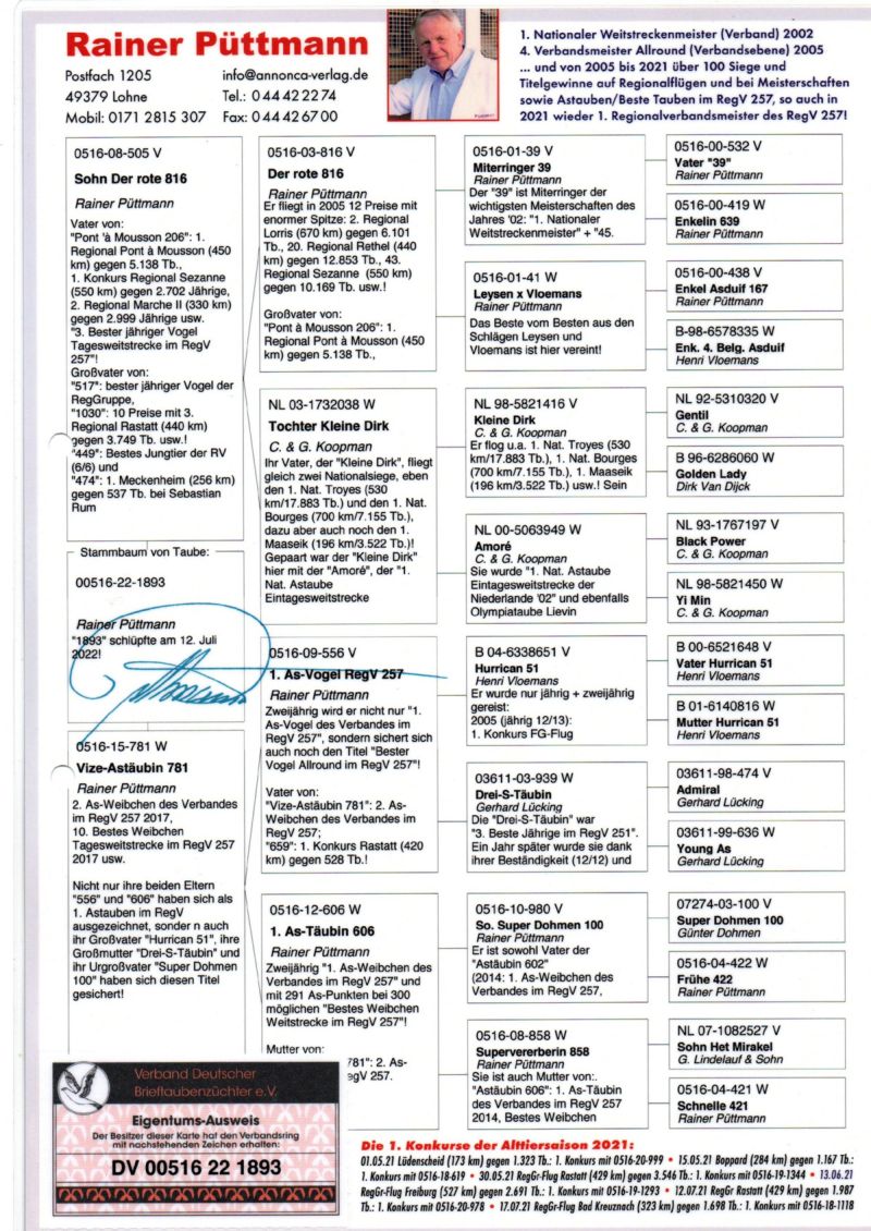 DV-0516-22-1893 - oryg. Rainer Puttmann - Wnuczka 556 1 As Regionu - Prawnuczka KLEINE DIRK