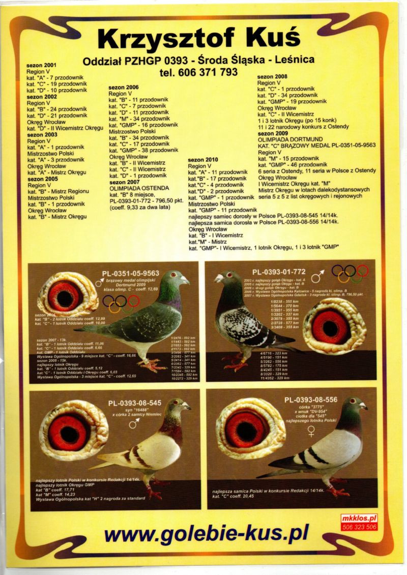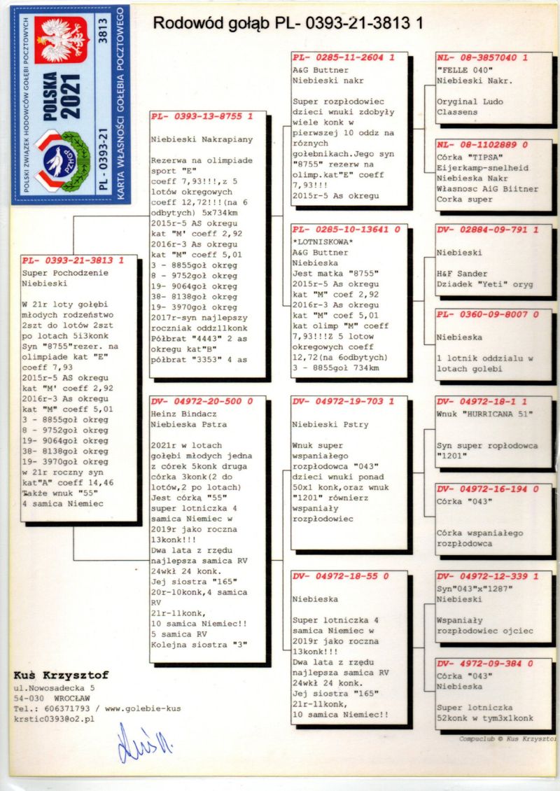 Sprzedawany z gołębnika M. & M. & M. Kaciczak.