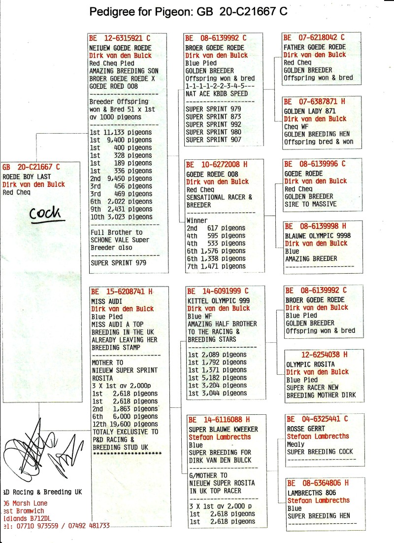 Oryginalny golab z pochodzenia Dirk van den Bulck