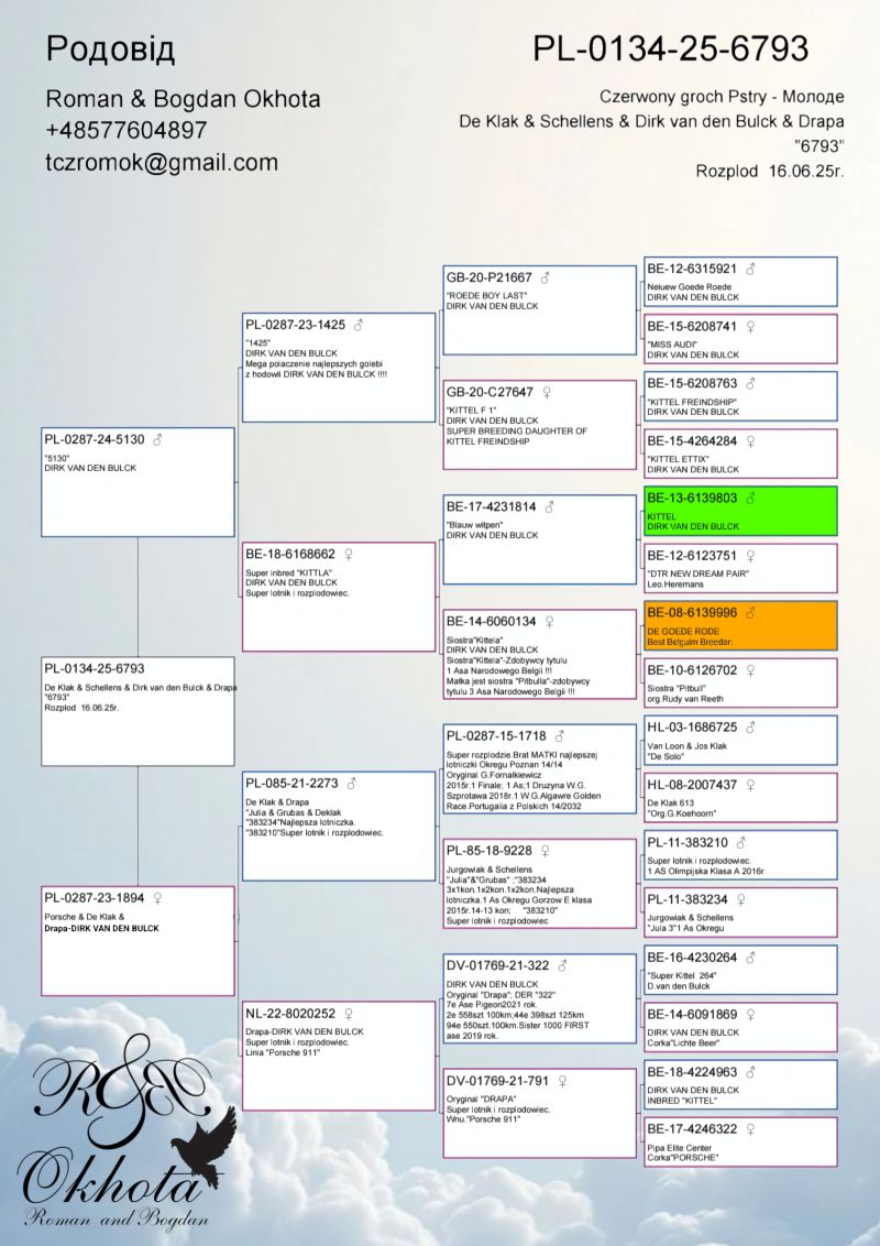 Płeć: młody gołąb Hodowca - rasa: oryg. Hodowla Gołębi Roman & Bogdan Okhota Zakończenie: 12.11.2025 godz. 20:00