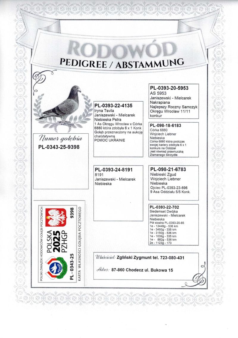 PL-0343-25-9398 syn I Asa okręgu × wnuczka Wielki Książe