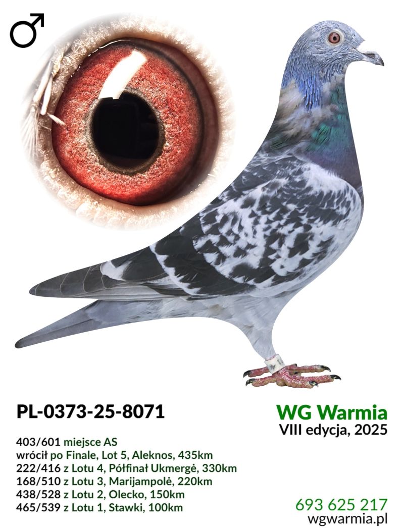 Uczestnik WG Warmia 2025, sezon VIII. Loty z kierunku północny wschód, Litwa. Wrócił po Finale, 403 AS. Szczegóły pochodzenia w rodowodzie.