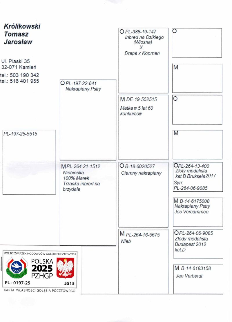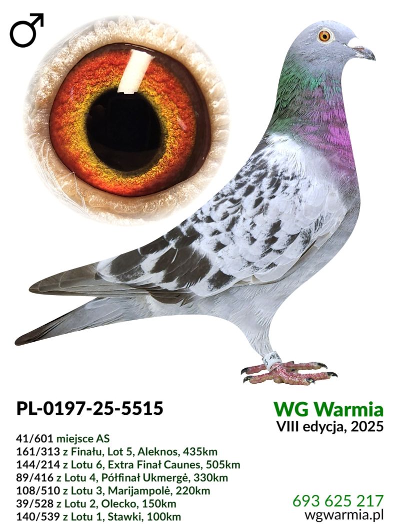 Uczestnik WG Warmia 2025, sezon VIII. Loty z kierunku północny wschód, Litwa. 161 z Finału, 41 AS, 144 z Extra Finału. Szczegóły pochodzenia w rodowodzie.