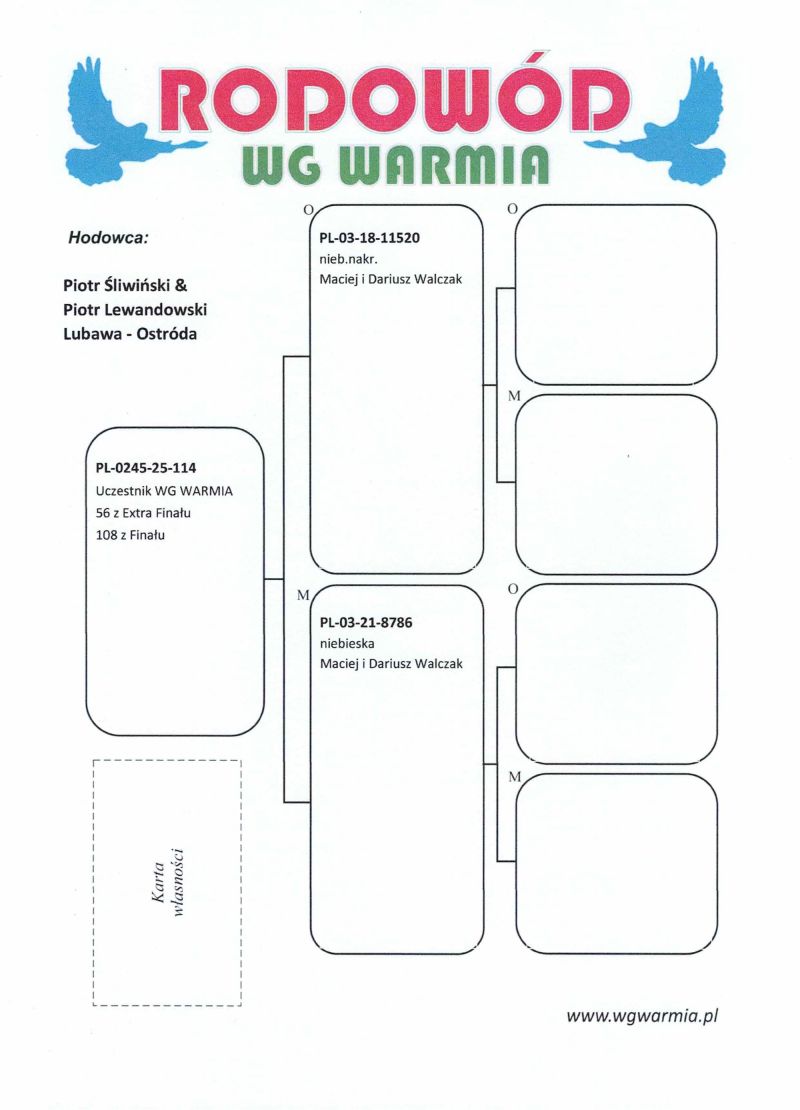 Uczestnik WG Warmia 2025, sezon VIII. Loty z kierunku północny wschód, Litwa. 108 z Finału, 301 AS, 56 z Extra Finału. Szczegóły pochodzenia w rodowodzie.