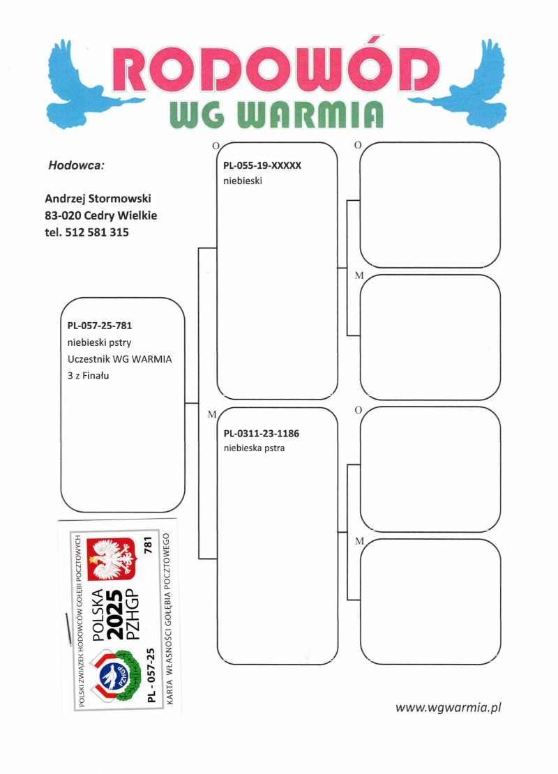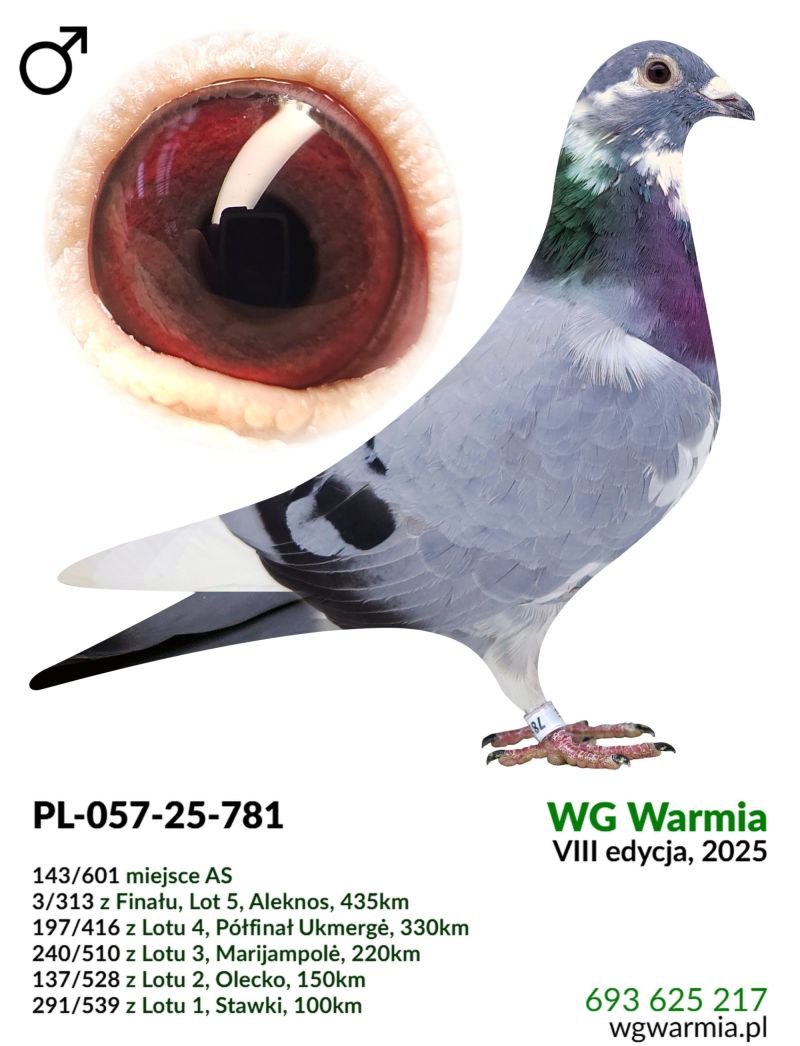 Uczestnik WG Warmia 2025, sezon VIII. Loty z kierunku północny wschód, Litwa. 3 z Finału, 143 AS. Szczegóły pochodzenia w rodowodzie.