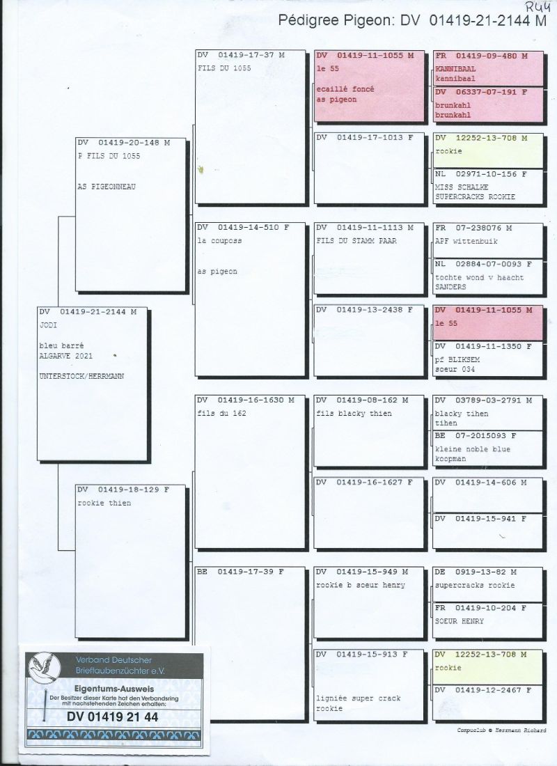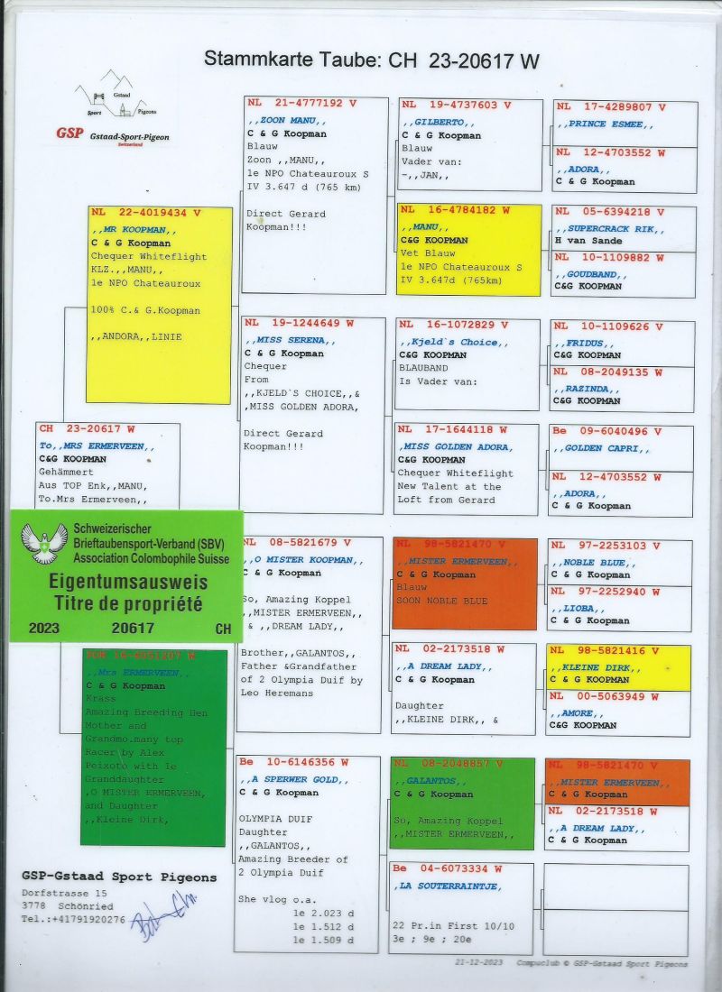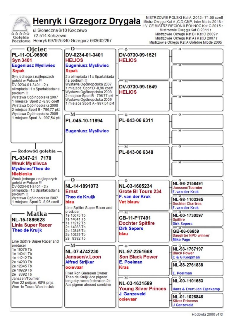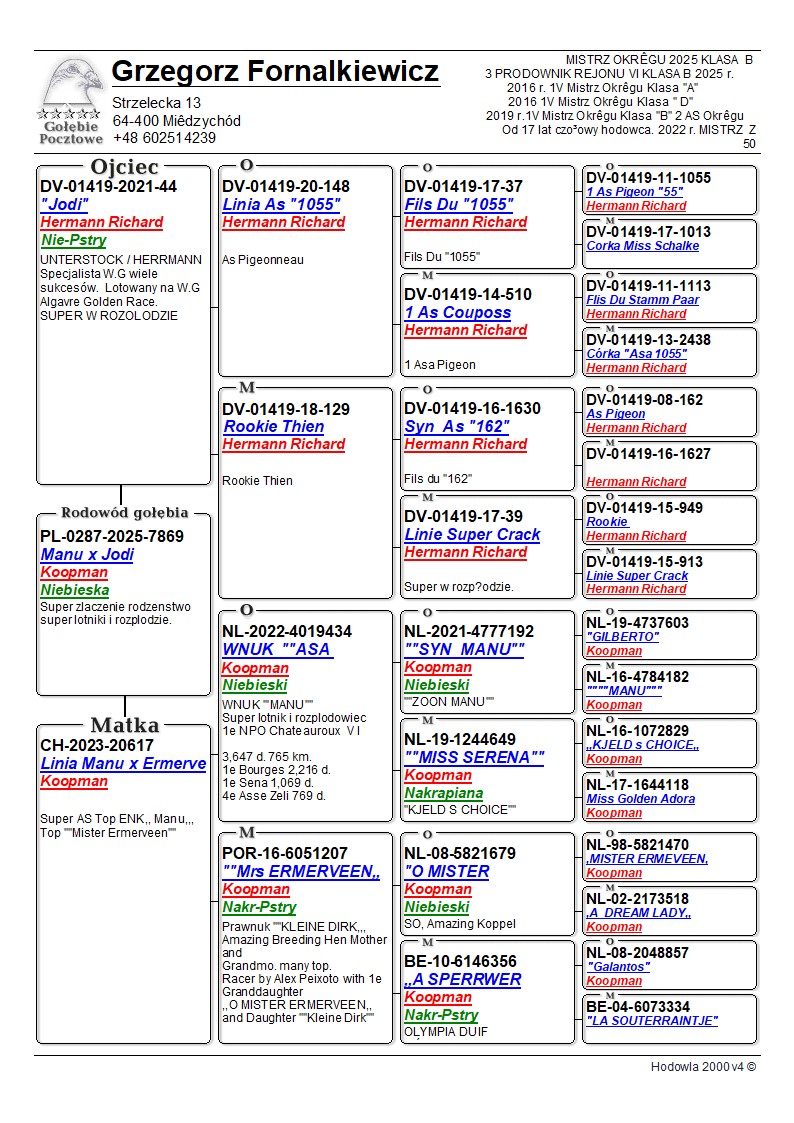 Gołębie z tej linii od wielu lat przyczyniały się do zdobycia takich sukcesów jak :