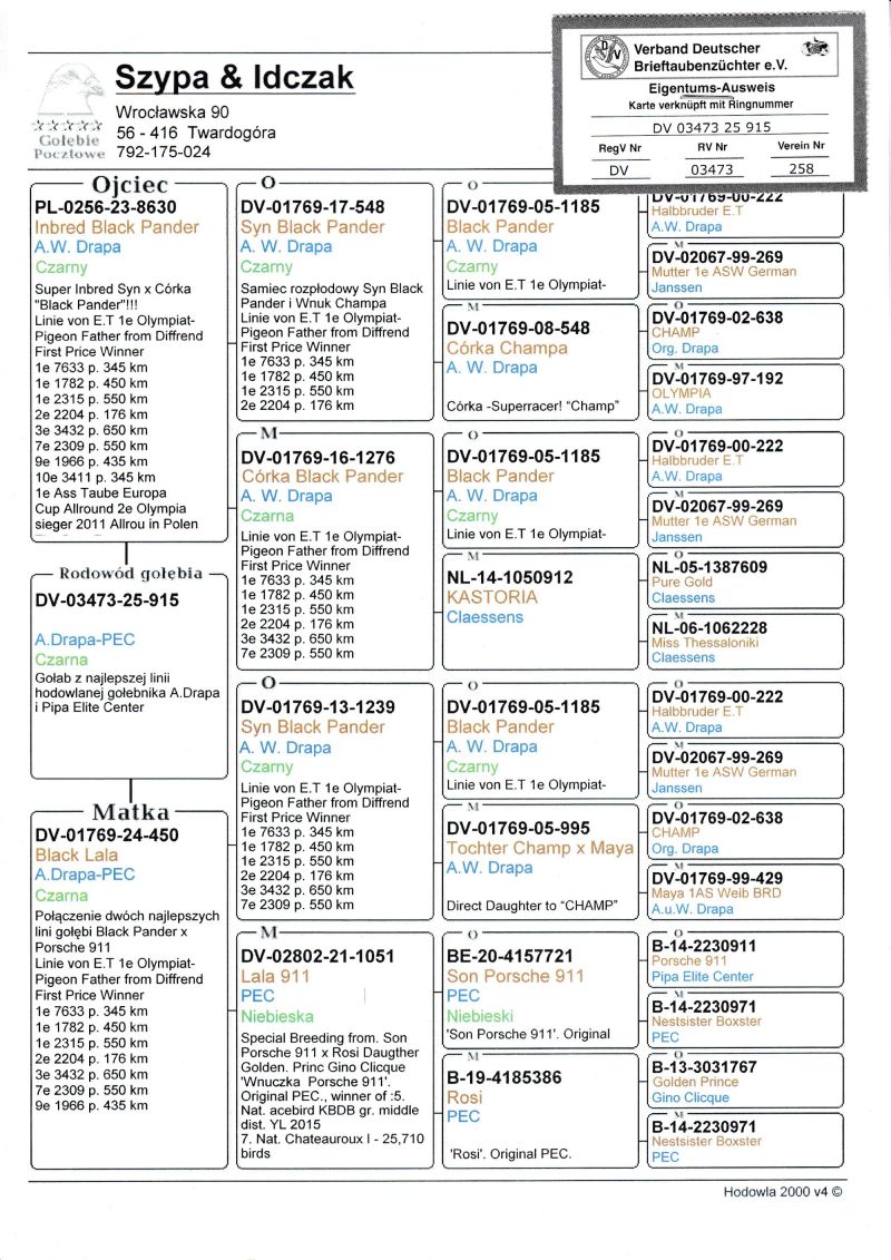Hodowca - rasa: oryg. A. & W. Drapa