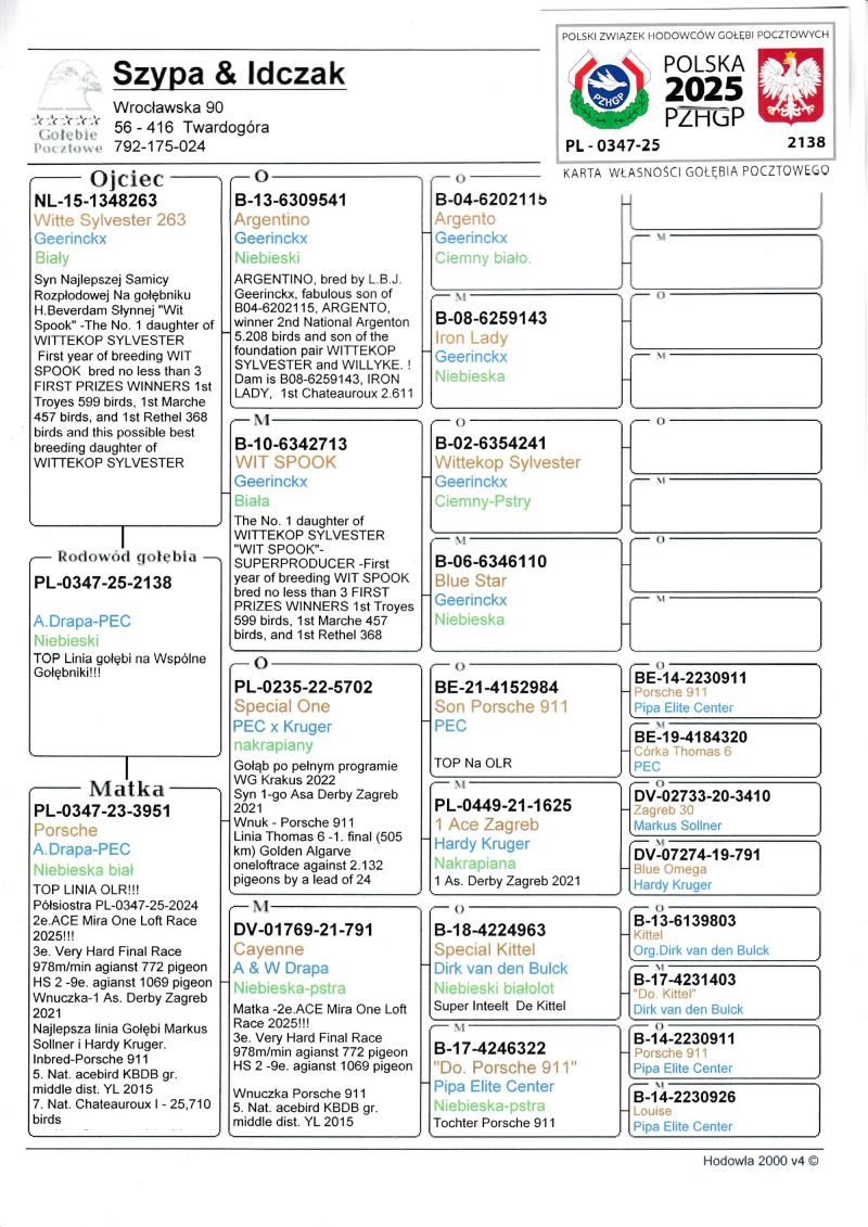 Profesjonalna hodowla z wieloletnim doświadczeniem, posiadająca w swoim stadzie materiał najwyższej światowej klasy. Więcej informacji w załączonych materiałach oraz pod nr tel. 792-175-024 Oferowany gołąb to prawdopodobnie SAMIEC. Płeć pisana orientacyjnie Wysyłka 100 zł