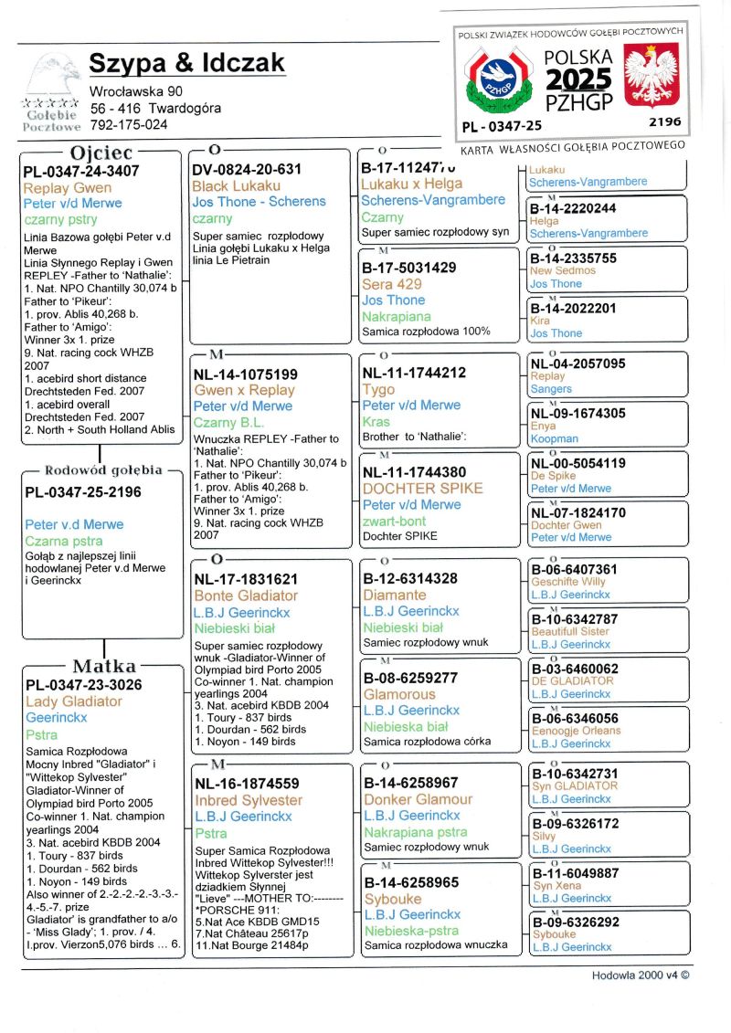 Profesjonalna hodowla z wieloletnim doświadczeniem, posiadająca w swoim stadzie materiał najwyższej światowej klasy. Więcej informacji w załączonych materiałach oraz pod nr tel. 792-175-024 Oferowany gołąb to prawdopodobnie SAMICA. Płeć pisana orientacyjnie Wysyłka 100 zł