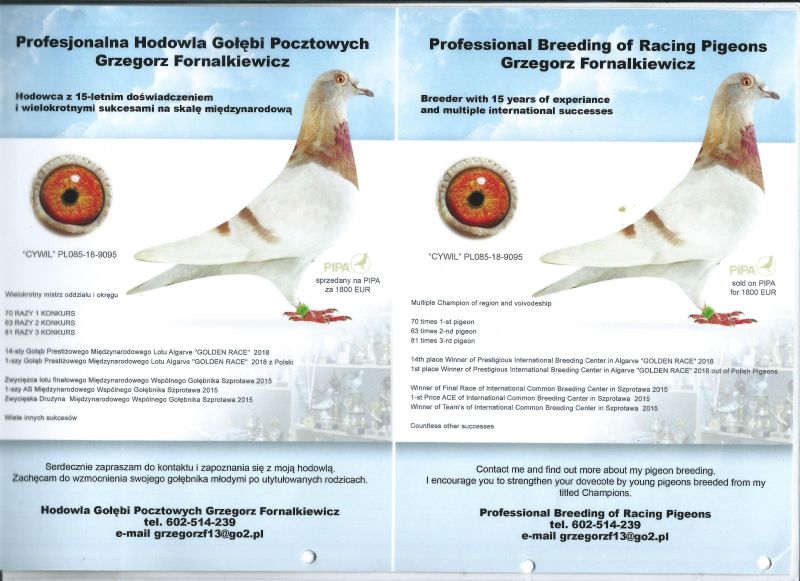 Płeć: młody gołąb Hodowca - rasa: G. Fornalkiewicz Zakończenie: 13.11.2025 godz. 20:16