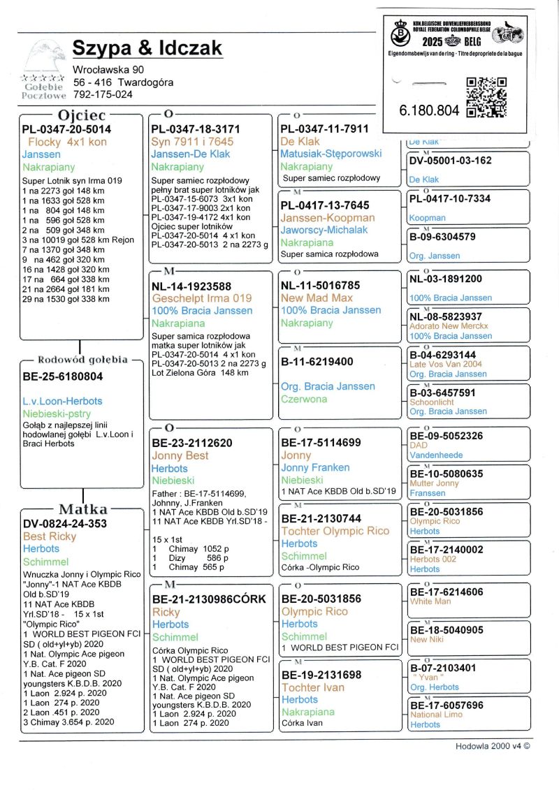 Profesjonalna hodowla z wieloletnim doświadczeniem, posiadająca w swoim stadzie materiał najwyższej światowej klasy. Więcej informacji w załączonych materiałach oraz pod nr tel. 792-175-024 Oferowany gołąb to prawdopodobnie SAMIEC. Płeć pisana orientacyjnie Wysyłka 100 zł