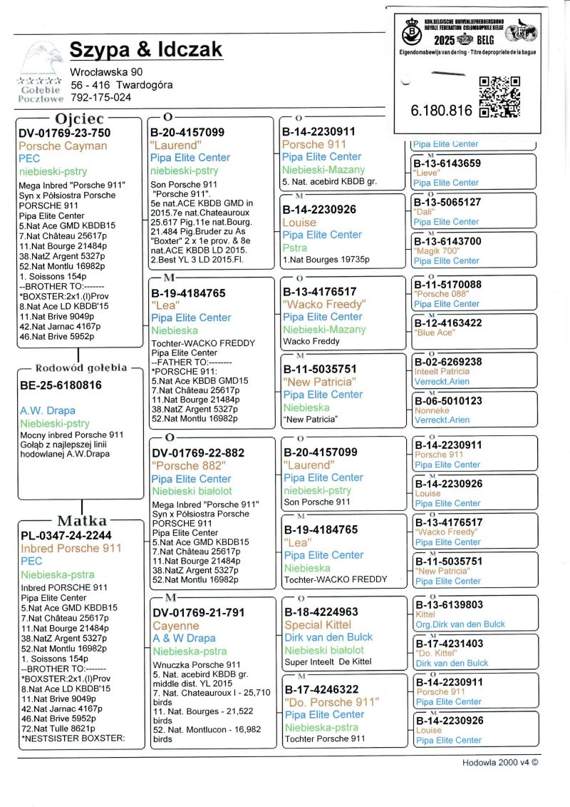 Profesjonalna hodowla z wieloletnim doświadczeniem, posiadająca w swoim stadzie materiał najwyższej światowej klasy. Więcej informacji w załączonych materiałach oraz pod nr tel. 792-175-024 Oferowany gołąb to prawdopodobnie SAMIEC. Płeć pisana orientacyjnie Wysyłka 100 zł