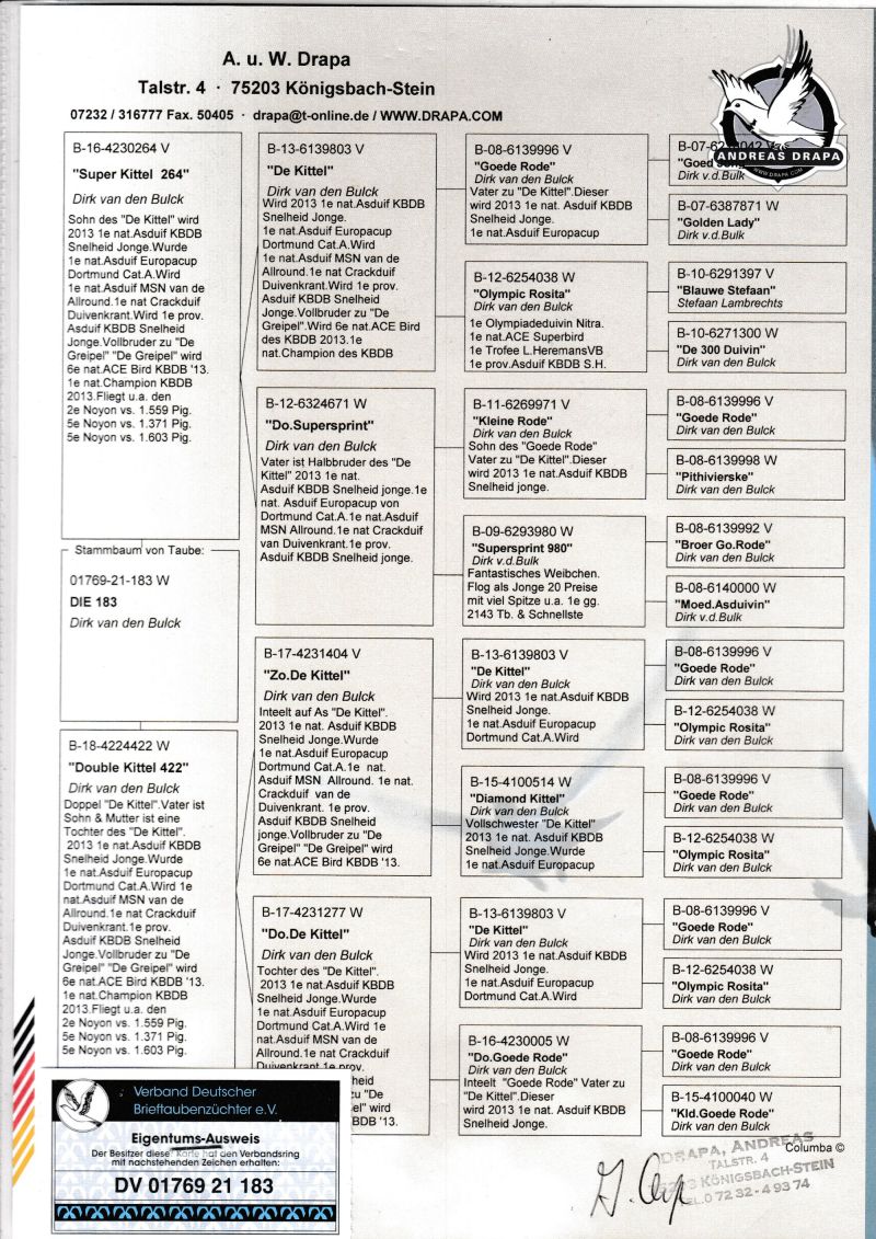 Profesjonalna hodowla z wieloletnim doświadczeniem, posiadająca w swoim stadzie materiał najwyższej światowej klasy. Więcej informacji w załączonych materiałach oraz pod nr tel. 792-175-024 Oferowany gołąb to prawdopodobnie SAMIEC. Płeć pisana orientacyjnie Wysyłka 100 zł