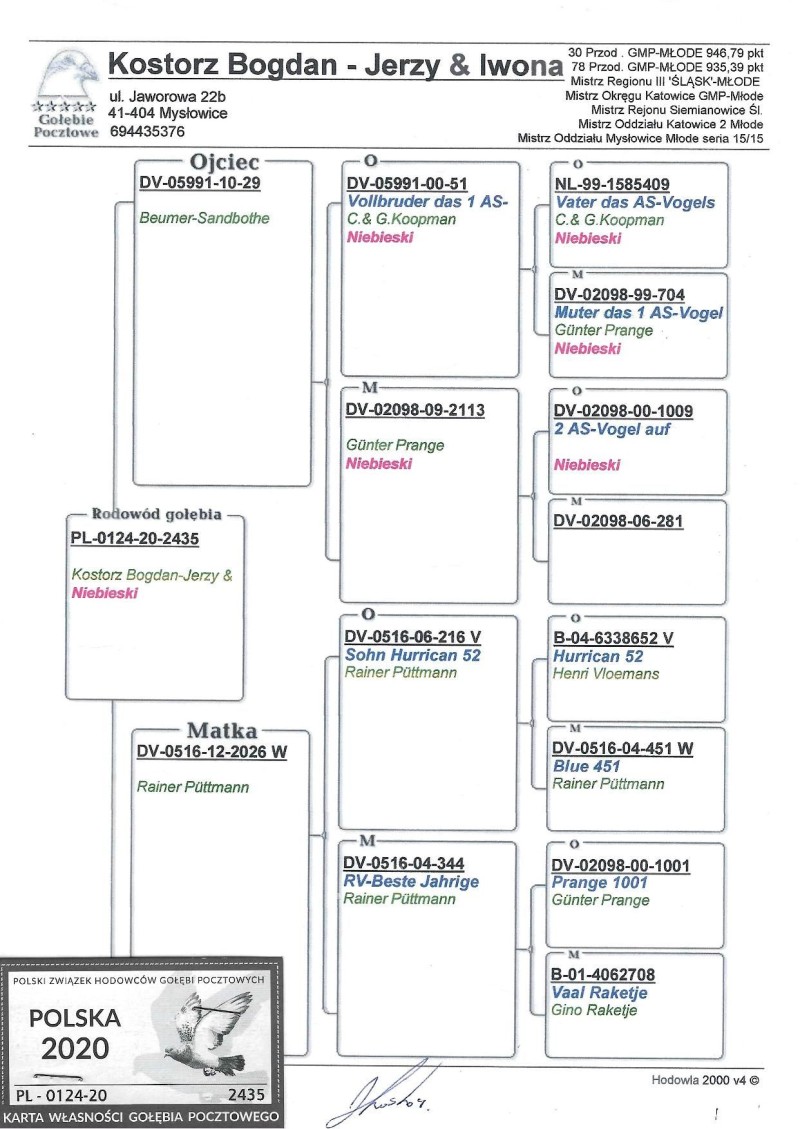 Oryginalny gołąb z hodowli Kostorz Bogdan - Jerzy & Iwona. Szczegóły pochodzenia w rodowodzie. Więcej informacji pod nr tel.: 516467223 **wysyłka od 100 do 180 zł