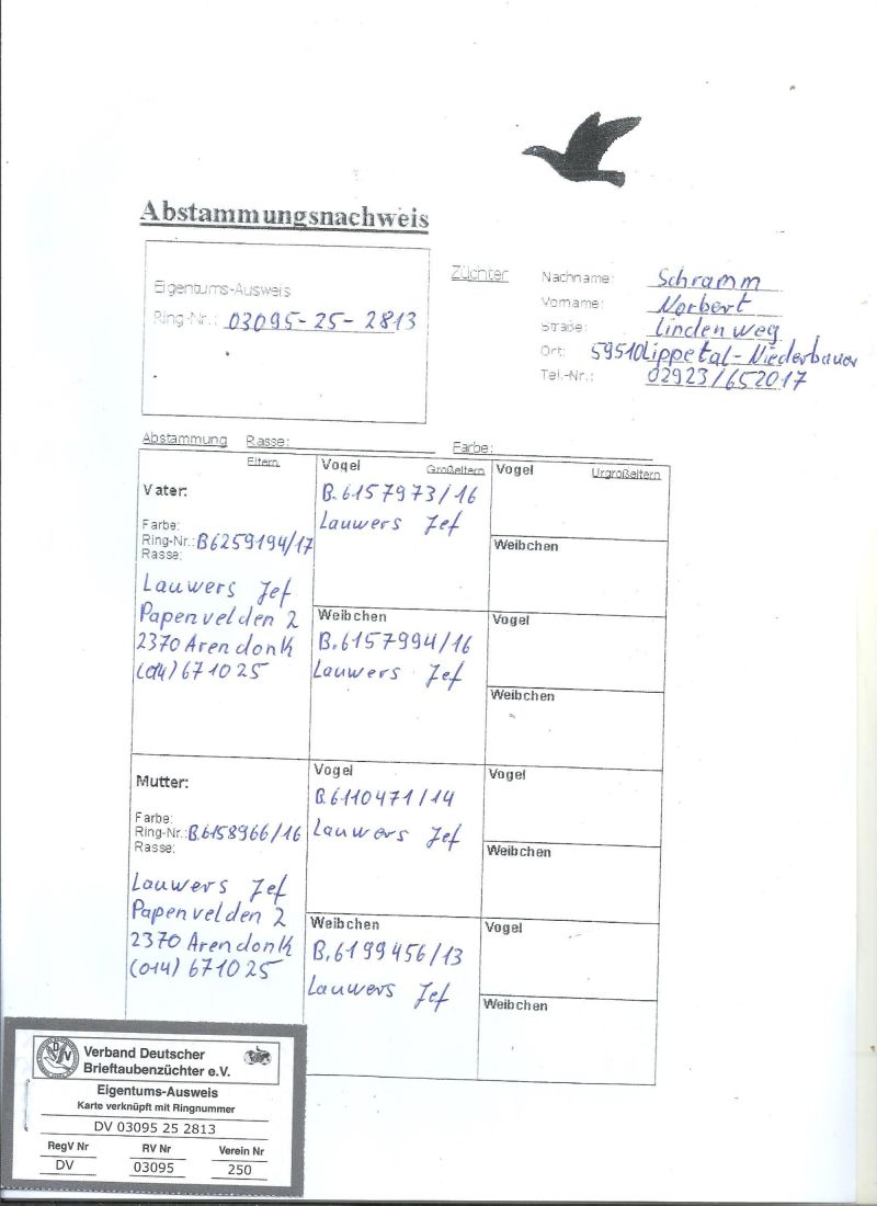 Płeć: młody gołąb Hodowca - rasa: WG GESEKE Zakończenie: 13.11.2025 godz. 20:38