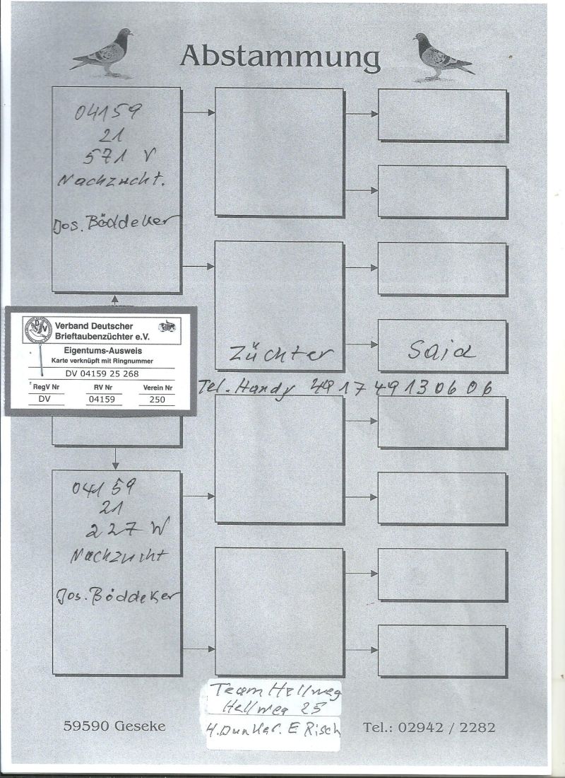 Płeć: młody gołąb Hodowca - rasa: WG GESEKE Zakończenie: 13.11.2025 godz. 20:52