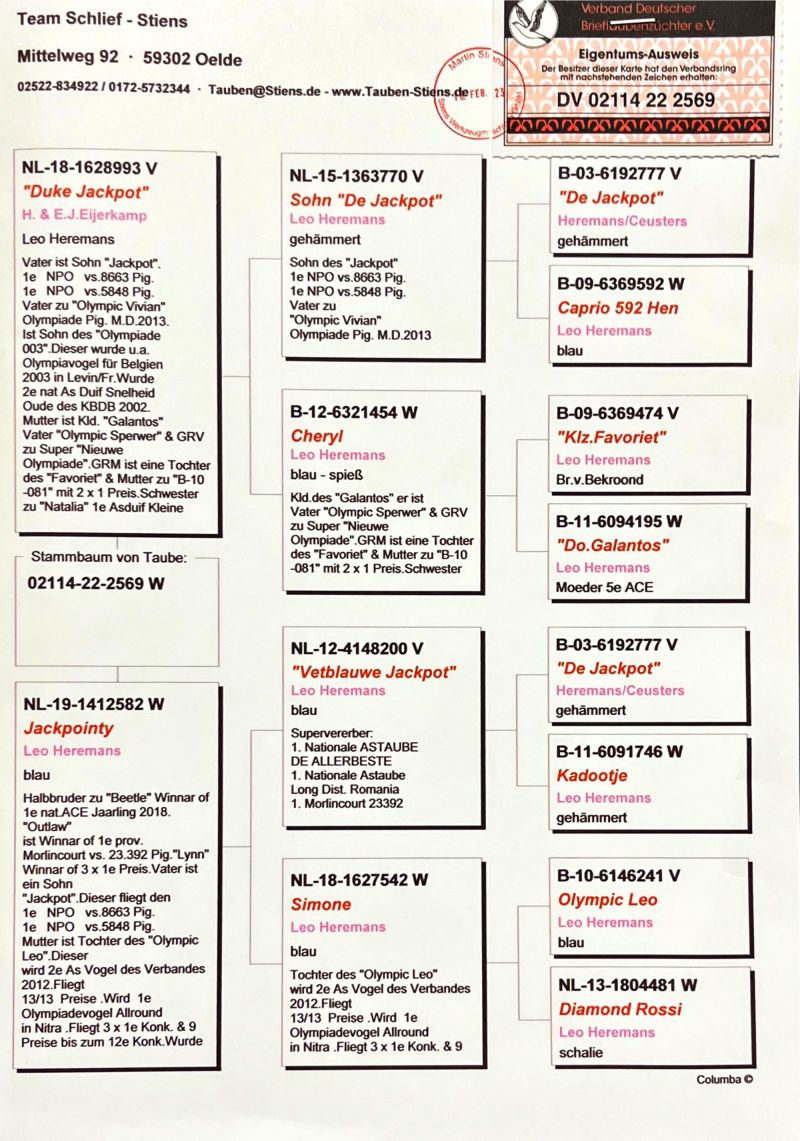 Oryginalny gołąb z hodowli Team Schlief - Stiens. Szczegóły pochodzenia w rodowodzie. Więcej informacji pod nr tel.: 667 228 056