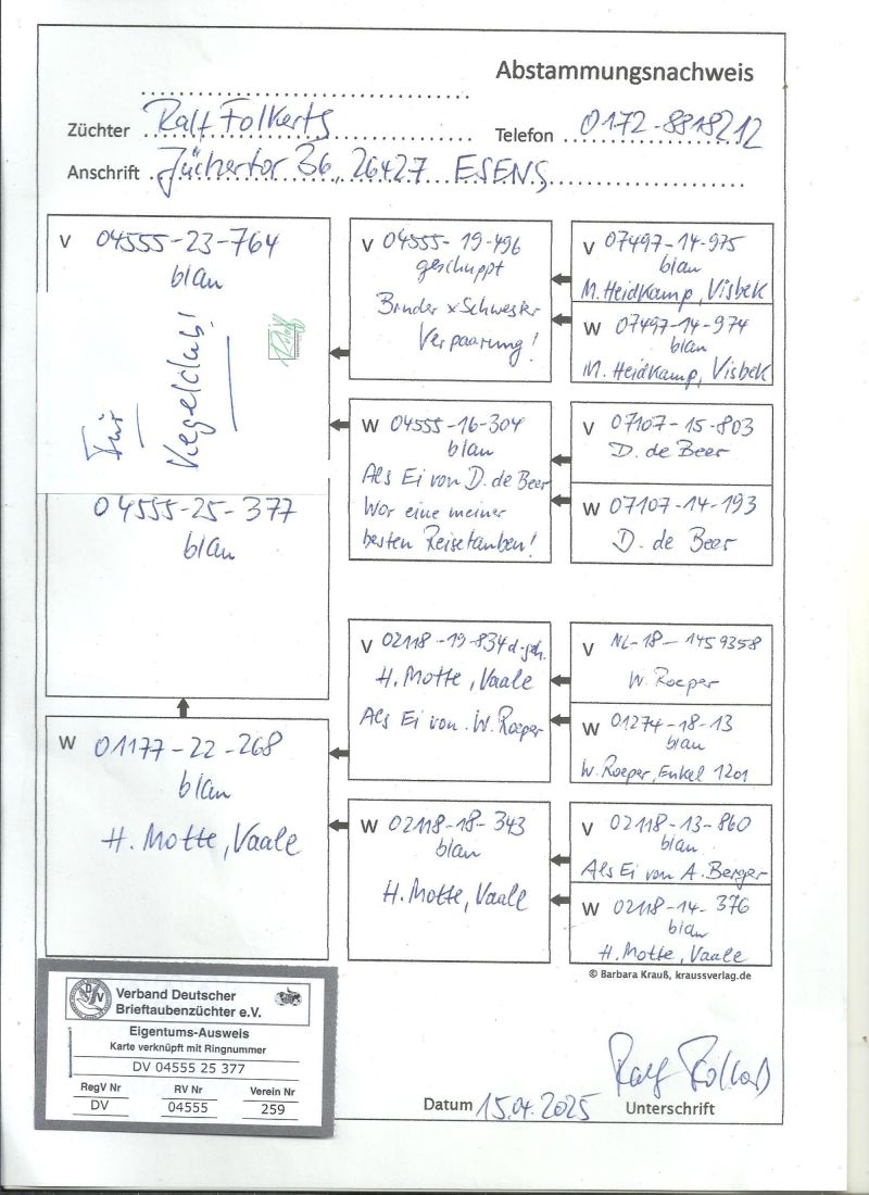 Płeć: młody gołąb Hodowca - rasa: WG GESEKE Zakończenie: 14.11.2025 godz. 18:20