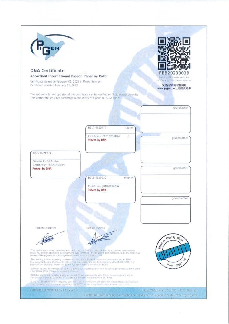 BE-22-6020571 - Syn "MUSTANG" x Córka "MUSTANG" oryg. Hok Jos Vercammen