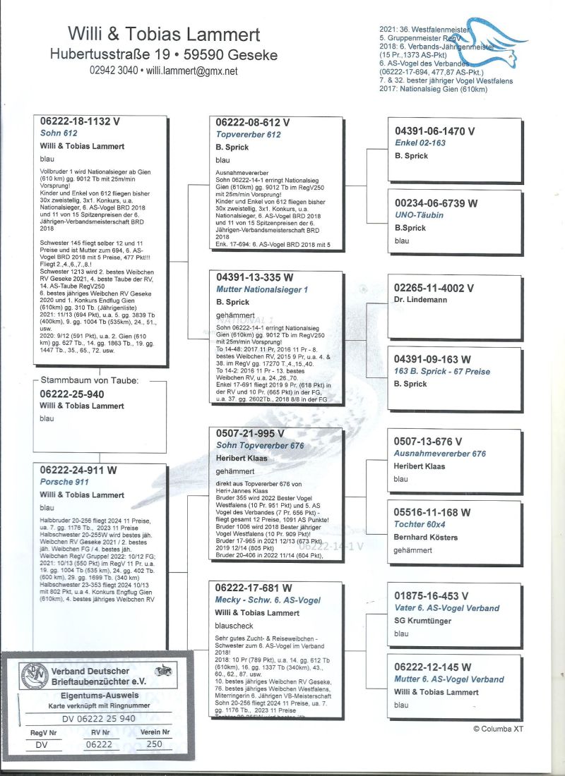 Gołębie ze wspólnego gołębnika GESEKE EDYCJA I 2025,.Gołębie brały udział w 4 lotach konkursowych i LOT FINAŁOWY 300KM,szczegóły pochodzenia w rodowodzie ,Więcej informacji pod nr tel.: 603 312 976, Wyniki dostępne klikając w link ,transport gołębi po wcześniejszej wpłacie pieniążków na konto .Gołębie będą rozwożone po 10.11.2025 ,koszt transportu 1-3szt-120zł,3-6szt-140zł płatne kurierowi.