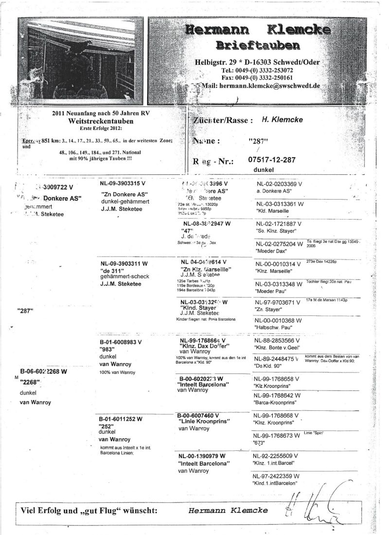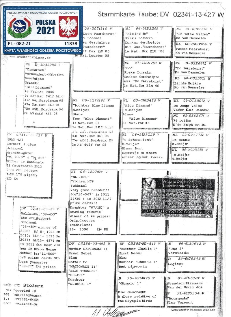 Oryginalny gołąb z hodowli Erhard Pahnke + GRATIS samica PL-082-21-11838 - Norbert Stolorz/Hermann Klemcke. Szczegóły pochodzenia w rodowodzie. Możliwość podesłania filmiku z prezentacji gołąbka. Więcej informacji pod numerem telefonu: 570 425 023 - Transport prywatnym kurierem lub odbiór osobisty.