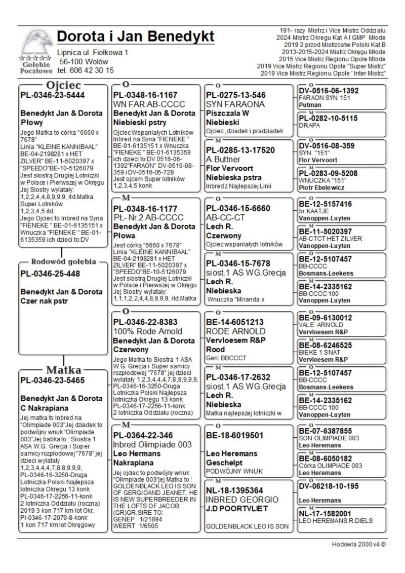 PL-0346-25-438 oryg. Benedykt Jan i Dorota 2024r. Mistrz Okręgu kat A i GMP Młode