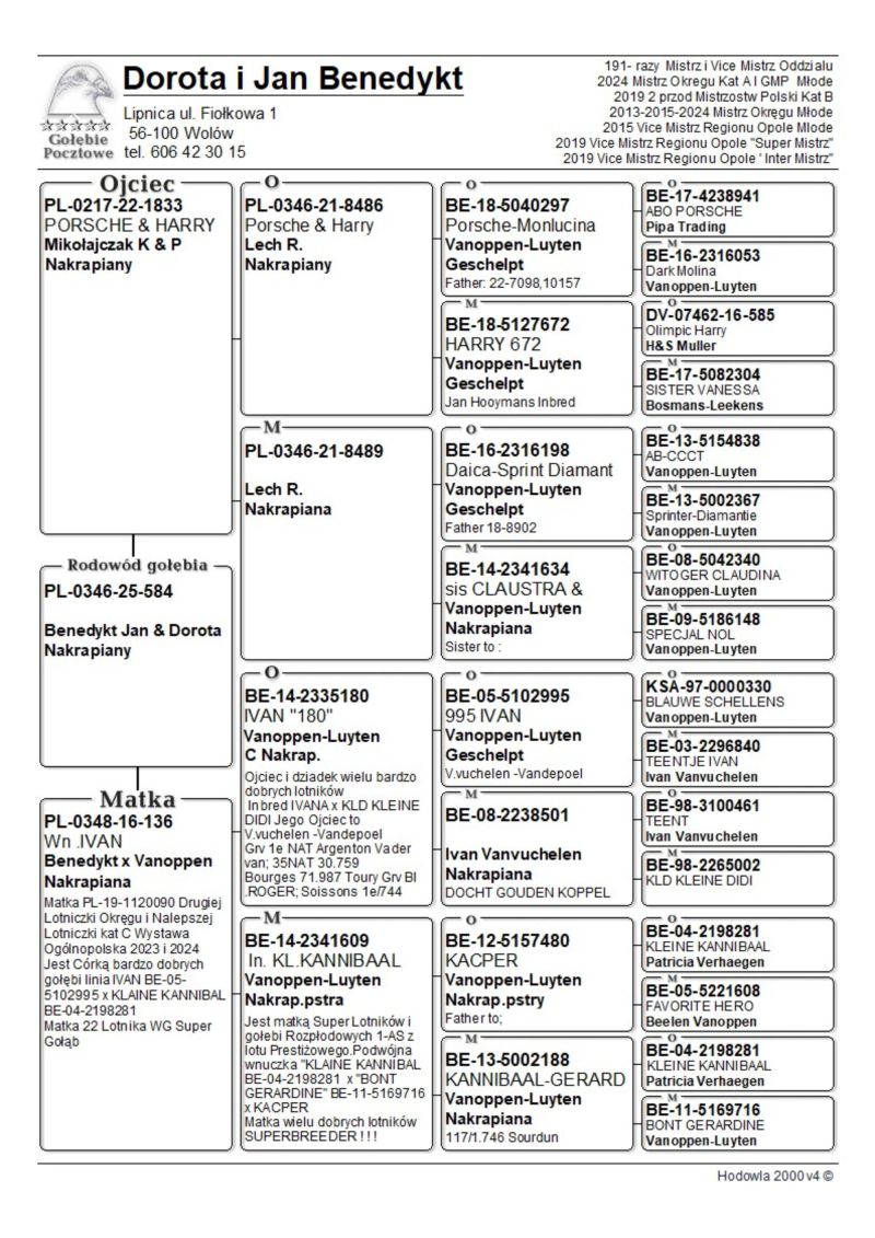 PL-0346-25-584 oryg. Benedykt Jan i Dorota 2024r. Mistrz Okręgu kat A i GMP Młode